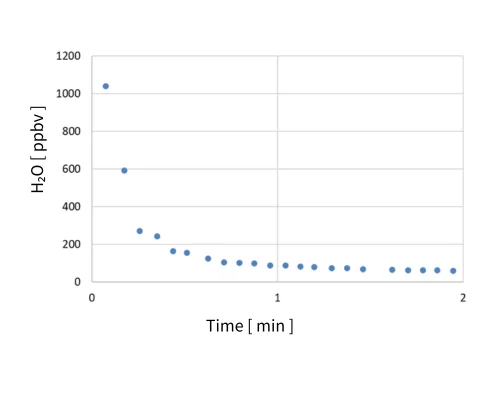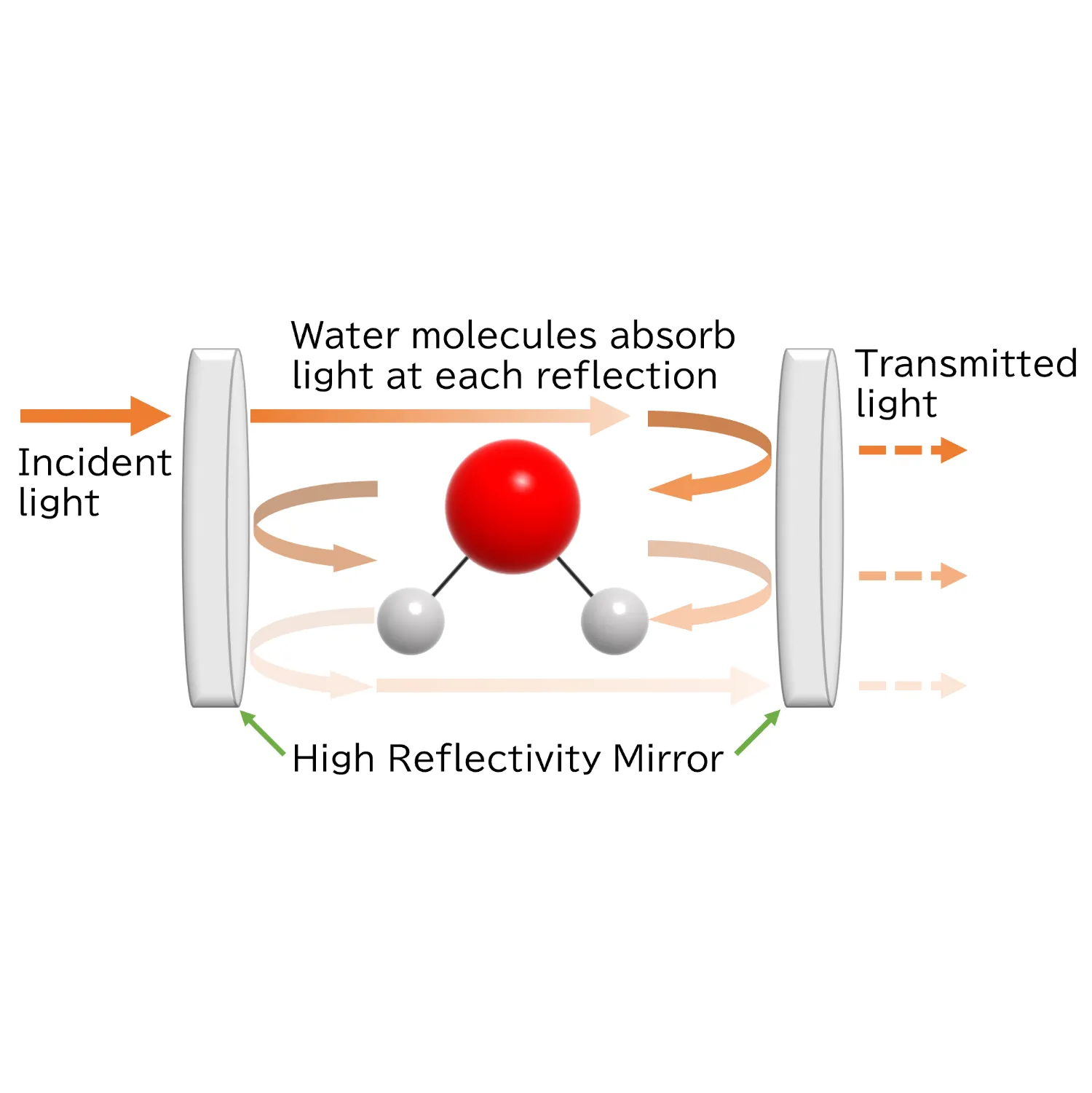 En mesurant le temps de décroissance de la lumière laser réfléchie plusieurs fois dans la cavité, l’humidité dans le gaz est calculée instantanément avec une grande précision. Cette méthode optique sans contact permet une mesure à grande vitesse de l’humidité à l’état de trace, répondant à des variations soudaines de concentration en quelques secondes.